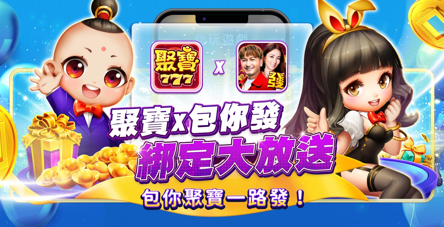 玩家於包你發娛樂城綁定手機門號,即可獲得一組唯一序號,複製此序號至聚寶Online APP內的活動頁『聚寶X包你發,綁定大放送』進行連動綁定即可完成「綁定送」任務。