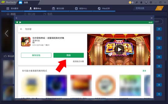 8. 安裝完成後點擊「開啟」進入包你發娛樂城!