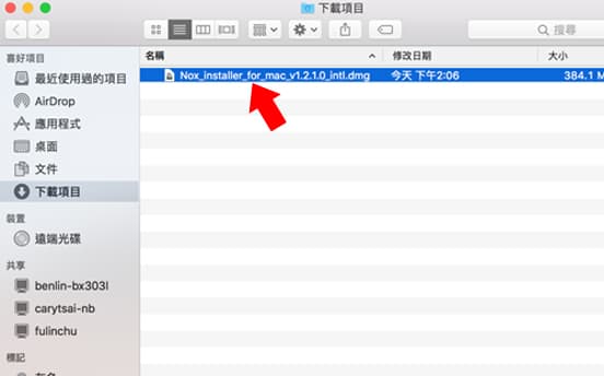 3. 安裝包確定下載完成後,會在「下載項目」右方顯示「Nox_install_for_mac…」,點擊該檔案下載進入下一步驟奏。