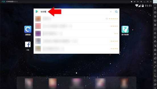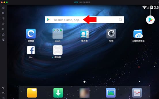 10. 當您成功開啟夜神模擬器後,進行一段教學後,這將會是您夜神模擬器的預設頁面。點擊正上方「Search Game, App…」的輸入框。