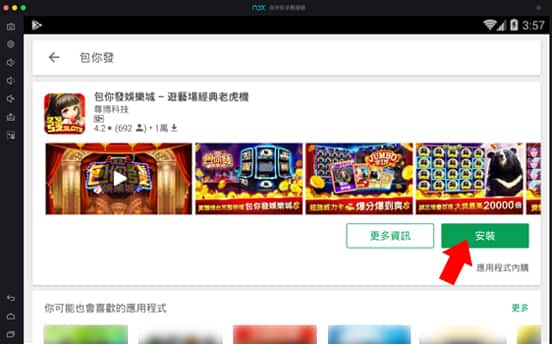 13. 獲得授權後開啟顯示第一個APP,「包你發娛樂城…」 點擊「安裝」按鈕並允許存取權。