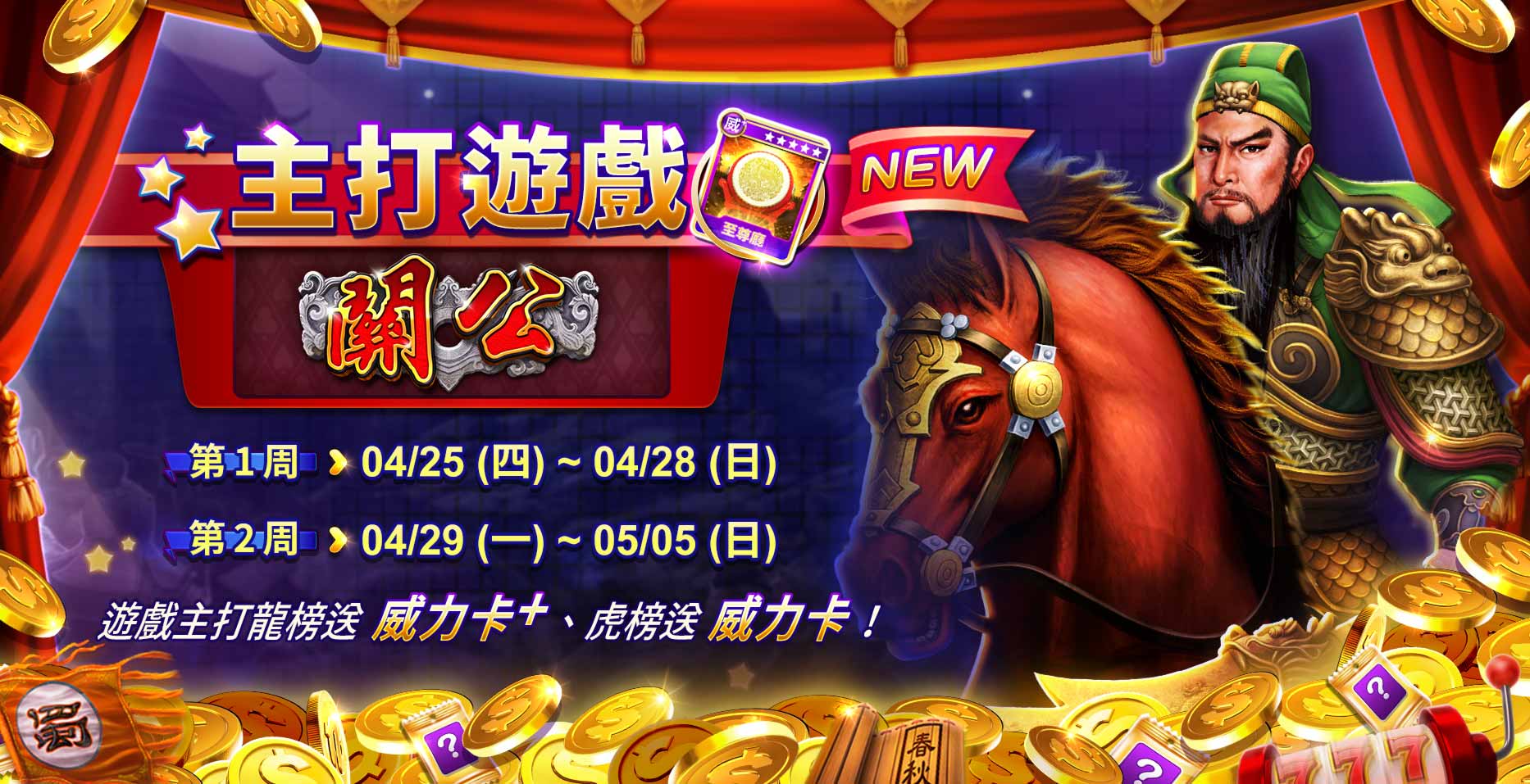 於『關公主打龍榜』的各廳館排名前二十名!就送該廳館『關公』威力卡+ 1張!龍榜道具卡獎勵將於每週日結算後發送至信箱。