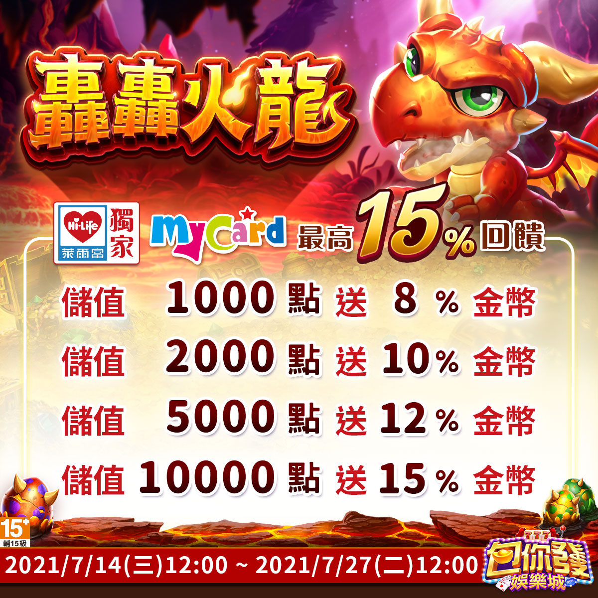 【一起"萊"挑戰轟轟火龍 儲值最高回饋15%】