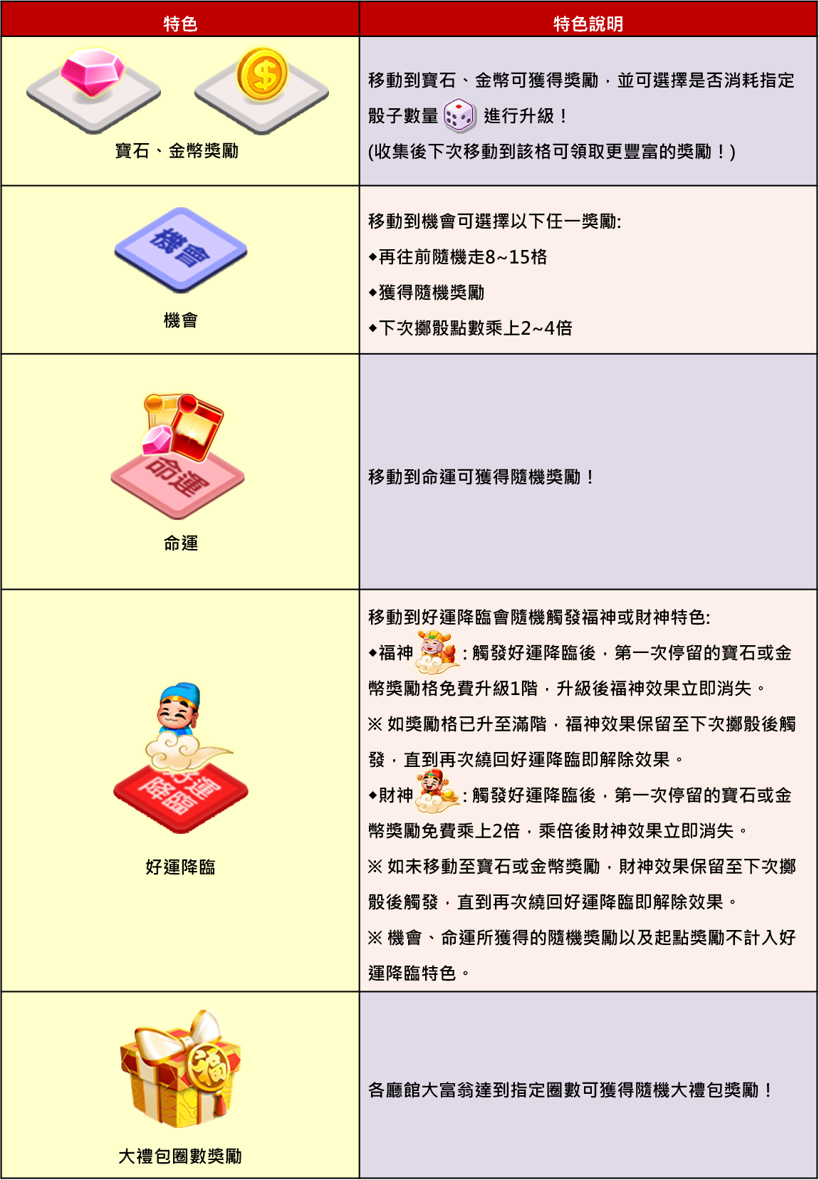 活動期間玩家於老虎機進行遊戲,可於『大富翁迺廟會』活動頁面使用骰子