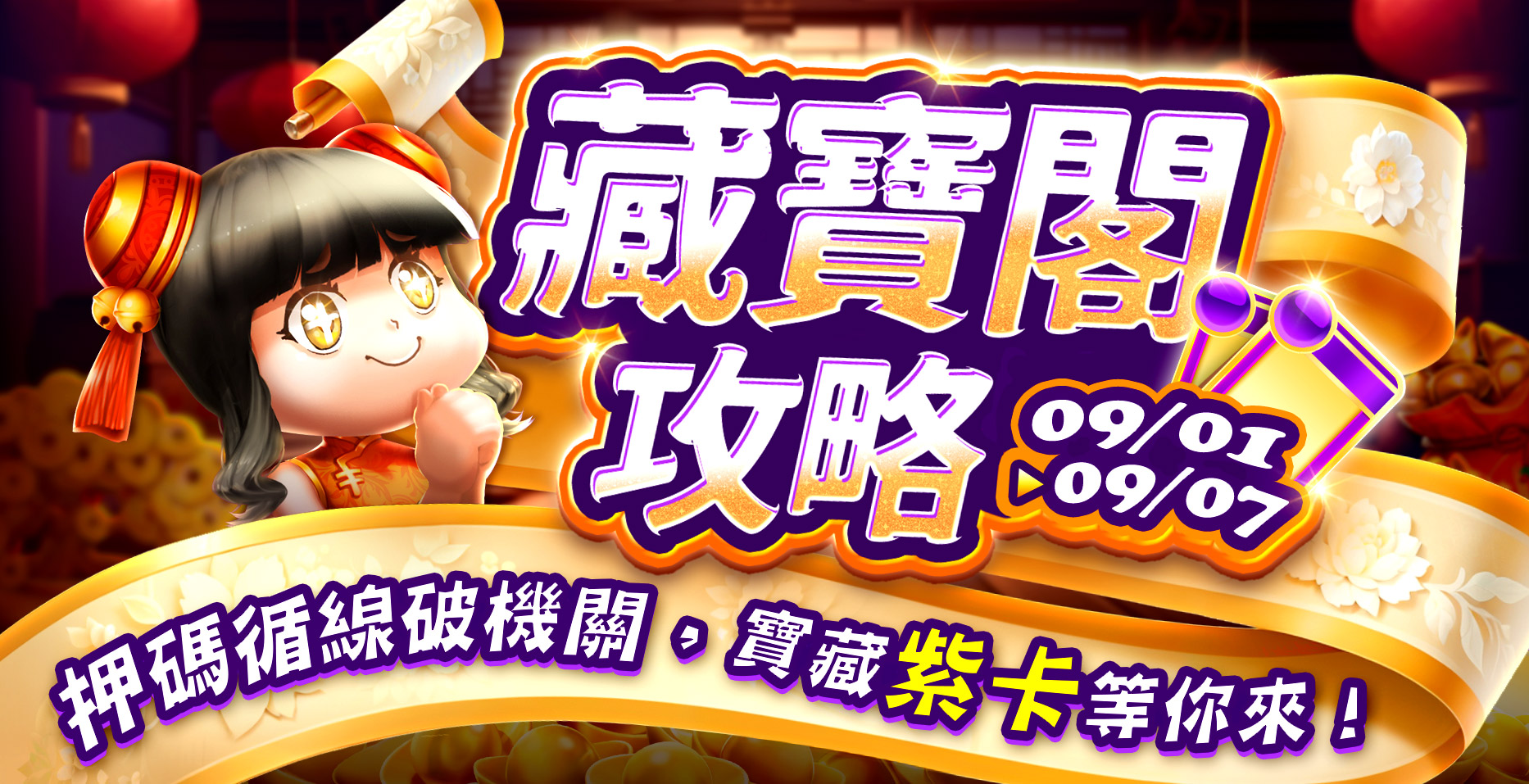 寶箱活動於09/01 00:00開跑,而玩家A於09/01 01:20 開始在一般廳以上的老虎機遊玩,此時木寶箱才開始倒數(挑戰時限為150分鐘),玩家A在03:40完成木箱挑戰,則精緻寶箱倒數時間即從03:40開始。