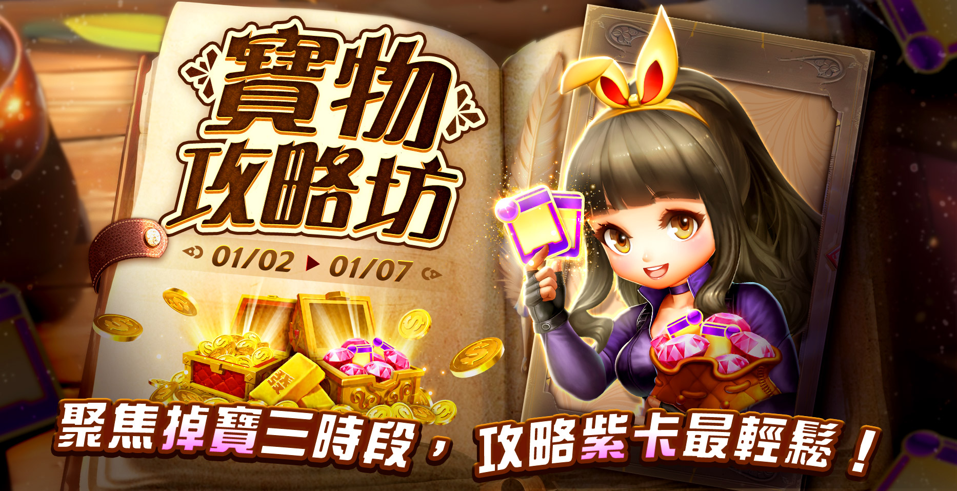 ● 活動辦法: 活動指定時間內於老虎機進行遊戲,掉寶率大幅提升!每一次旋轉皆有可能掉落寶物碎片或道具卡,親愛的玩家請把握機會,記得每天中午12點到下午2點;晚上7點到10點;凌晨2點到4點,一定要打開包你發娛樂城,並且進入遊戲中遊玩!機會難得,錯過可惜!