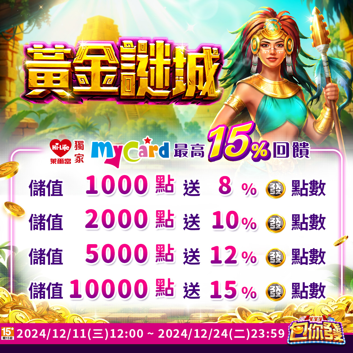 探索新機《黃金謎城》Mycard儲值回饋送!