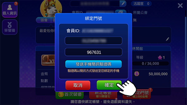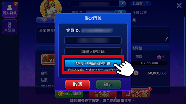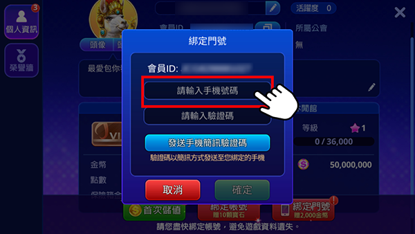 為了讓您的遊戲體驗更順暢,也避免因設備更換或其他情況造成資料遺失,提醒您可以綁定手機門號唷!綁定成功還有【金幣】好禮送給您!
