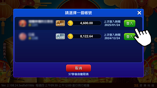 6.選擇您要遊玩的帳號,並點擊【登入】