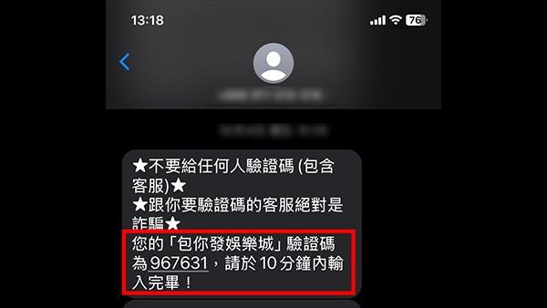 5.查看收到的簡訊驗證碼↓(為保護帳號安全,請勿給他人您的驗證碼)