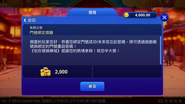 7.綁定完成後,至個人信箱即可領取獎勵!