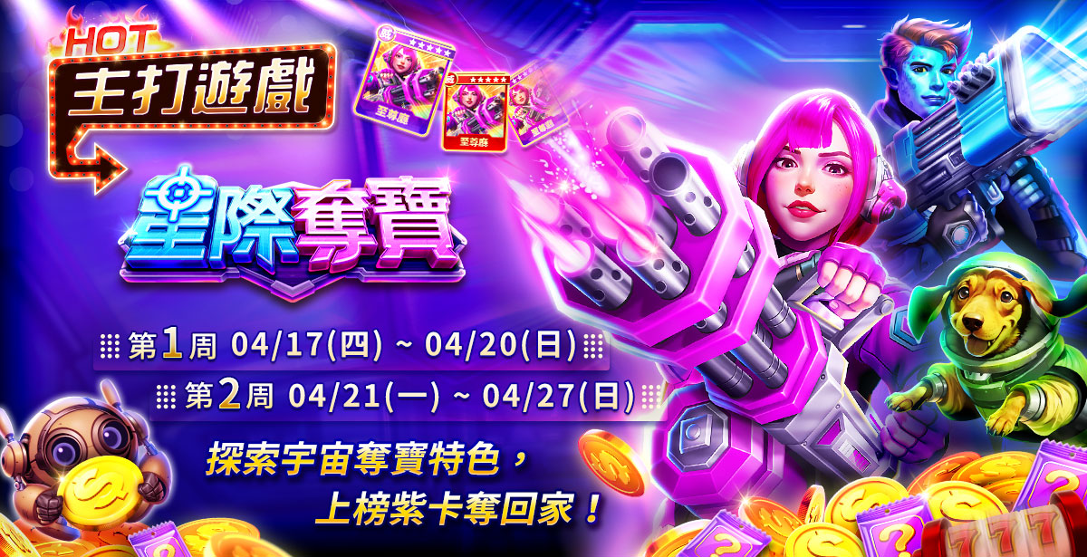 於『星際奪寶主打龍榜』的各廳館排名前二十名!就送該廳館『星際奪寶』威力卡+1張!龍榜道具卡獎勵將於每週日結算後發送至信箱。
