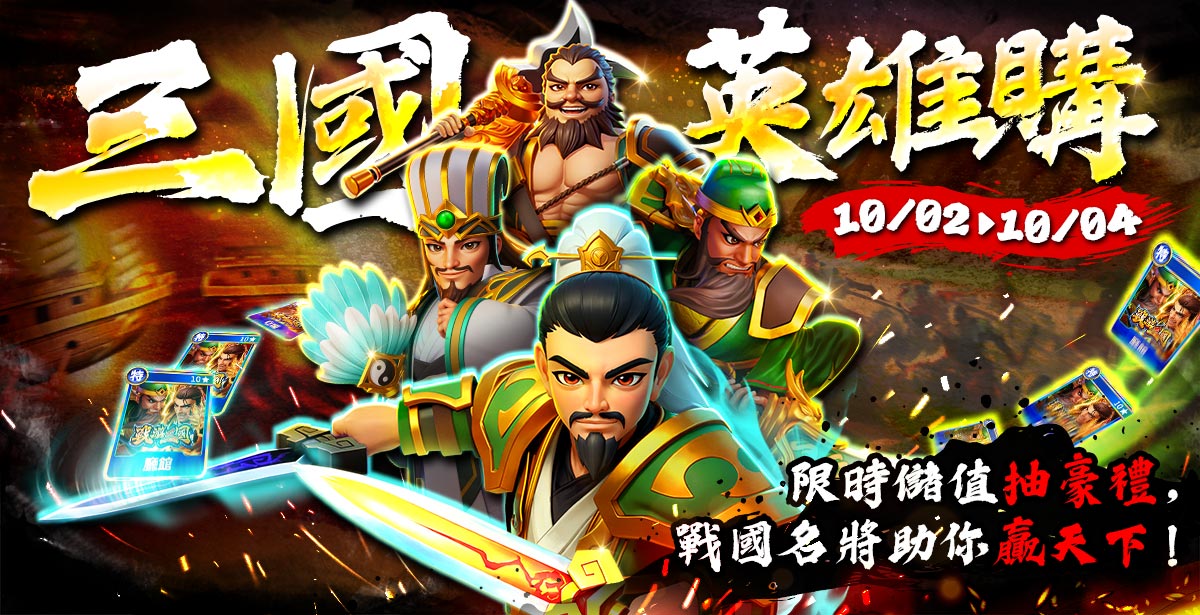 活動期間內,於各通路【儲值抽卡活動頁】購買對應指定金額商品,即可抽中『戰游三國』任一隨機遊戲卡片乙張,抽到的卡片將於5分鐘內發送至玩家信箱。