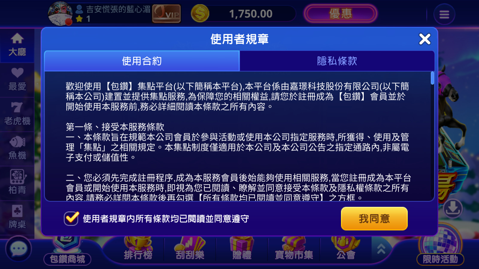 請先閱讀使用規章,並勾選同意遵守後,點擊【我同意】按鈕。