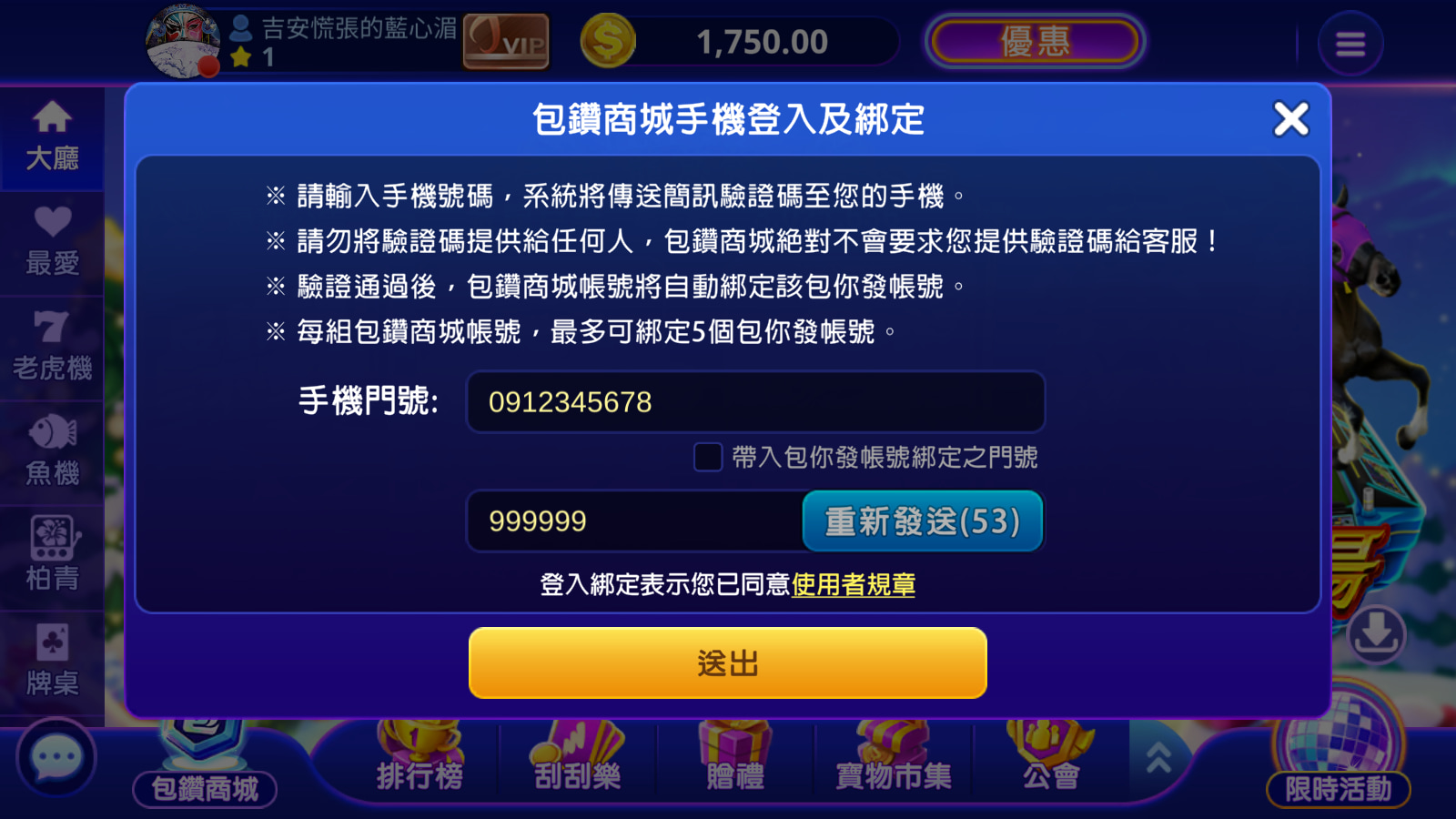 5. 同一包鑽商城帳號若綁定多個包你發遊戲帳號,所有帳號的押注將共同累積至該包鑽商城帳號。