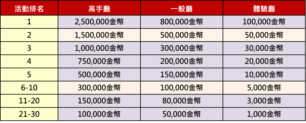 | 高手廳 (押注額度) |
