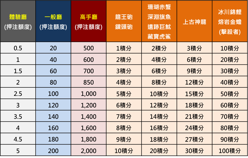 2.透過龍砲、葫蘆觸發彩金特色之方式,亦不列入捕獲積分計算。