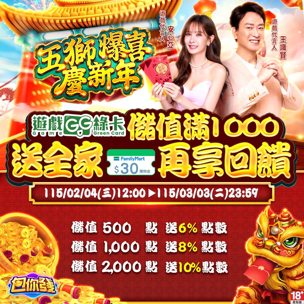 五獅爆喜慶新年!《遊戲綠卡》儲值包你發享多重回饋!